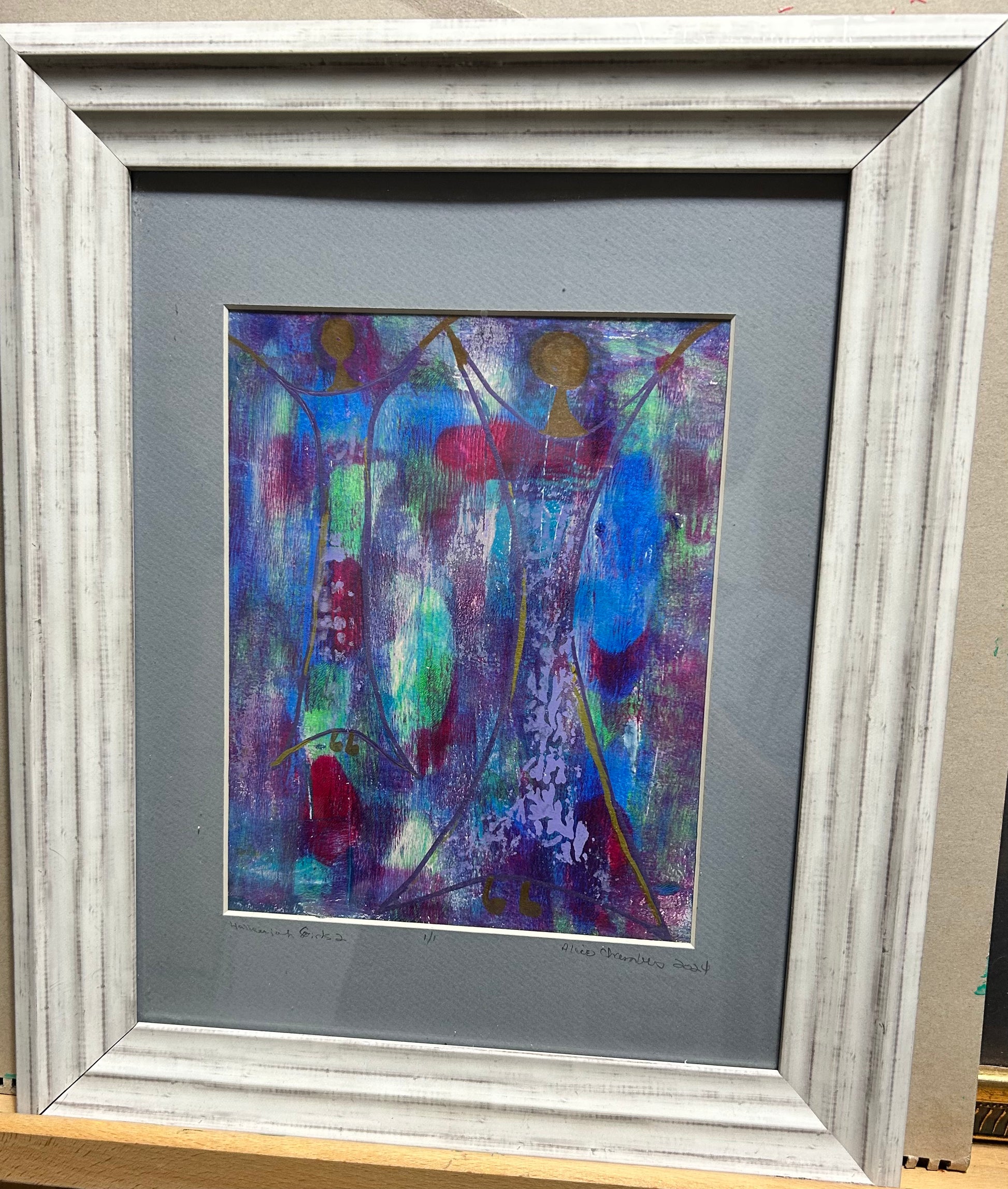 14.25” wide x 17.5” high. Matted and framed, free shipping in US
